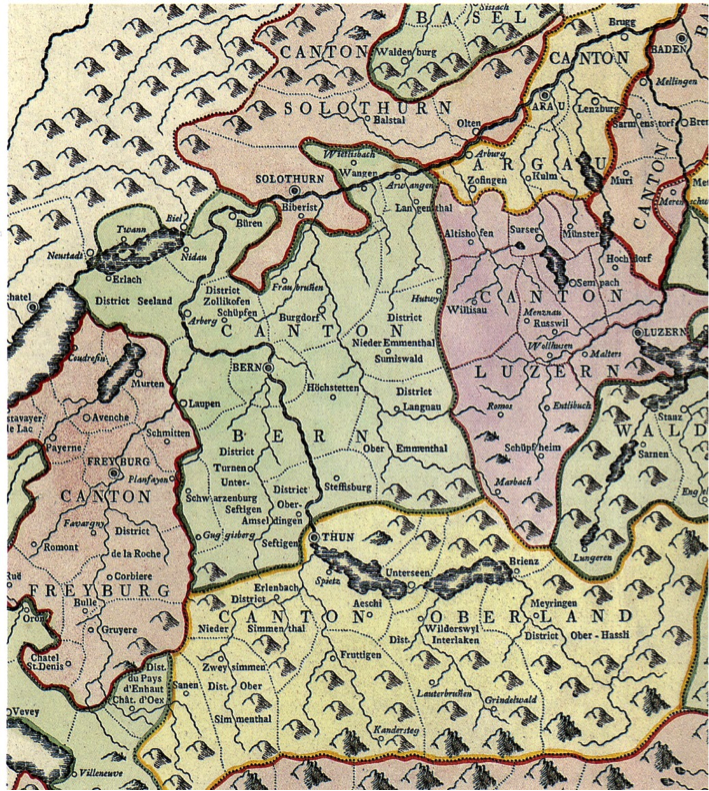 Auch in der Frage der Gemeindeeinteilung wirkt die Helvetik nach. Da in den damaligen gedruckten Karten die neuen Gemeindegrenzen noch nicht festgehalten wurden, soll hier jedoch nicht weiter darauf eingetreten werden.
