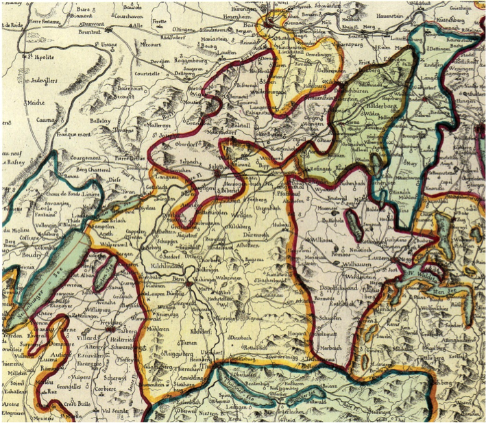Die Helvetik war eine Zeit, in der die erstarrten Formen der alten Eidgenossenschaft durch inneren und äusseren Druck aufgelöst wurden und während kurzer Zeit ein neuer Anfang versucht wurde, der dann schliesslich nach langem Ringen eine Verbindung von Altem und Neuem brachte. Es wurde versucht, ein Mosaik von historisch gewachsenen Territorien unterschiedlicher Rechte und Beziehungen durch eine neue Territorialeinteilung auf rationaler Grundlage zu ersetzen. Karten zeigen Grenzen, und besonders in Zeiten der Umwälzung sind diese von besonderer Bedeutung. Auch für Johann Friedrich von Ryhiner war die Darstellung der inneren Gliederung eines Staates von grosser Wichtigkeit. Die während der Zeit der Helvetik veröffentlichten, allerdings nicht sehr zahlreichen Karten entstanden vor dem Hintergrund stetig wechselnder Gebietseinteilungen, die durch die damalige Kartenproduktion nur teilweise nachvollzogen werden konnten.