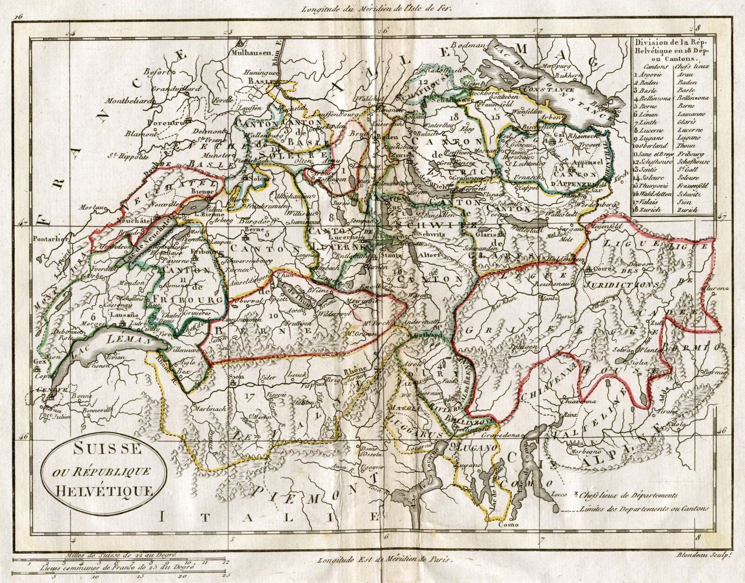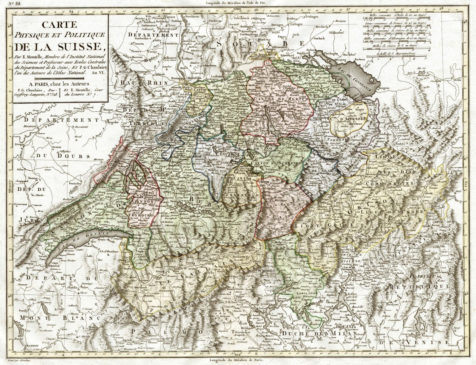 (Quelle: Carte Physique et Politique de la Suisse, Mentelle Edme, 1798, 2010, www.zumbo.ch/maps)
